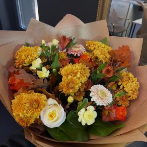 Aranjat manual în atelierul Alanys Flowers Ploiești, cu atenție la detalii și selecția florilor proaspete.